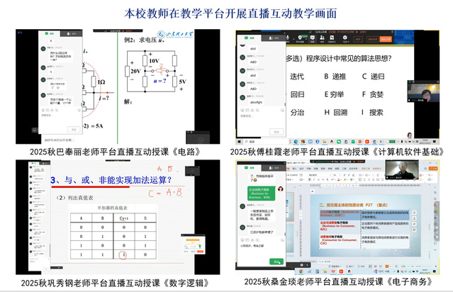 在教学组织实施中,一是选派本校优秀教师赴校外教学点现场教学,实现优质教学资源的跨区域共享,强化面对面教学互动;二是通过直播课堂搭建线上师生互动平台,开设482间直播间,完成近300门课程的线上教学直播和线下面授同步直播。